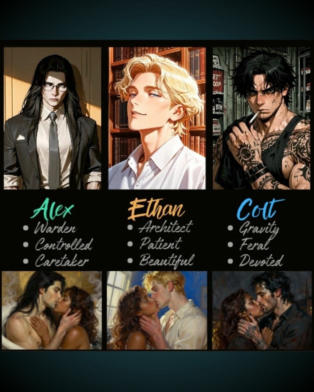 Colt: feral himbo with rage issues, tattooed morally grey cinnamon roll, touch-starved possessive, “mine” said through teeth, knuckle-tattoo romance, primal kink, he’d kill for you and cry about it after.